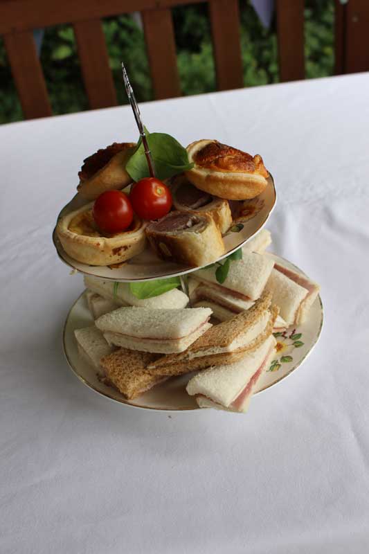 Food was provided by the Yorkshire Sweet Cafe with a delicious menu planned. They normally turn up with a caravan but unfortunately already had another event planned on that day. It didn’t stop them from turning up with LOTS of delicious food and decorations for the party. As well as a variety of sandwiches and homemade quiches and sausage rolls you had the most salivating cakes and scones to pick from. All lovingly displayed on china plates.